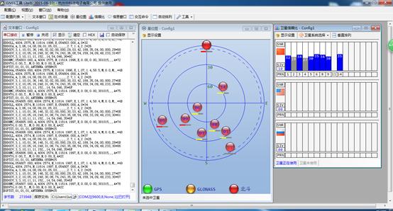 在信噪比上,顯示顆數(shù)為9顆,藍色的是可使用的衛(wèi)星,其高度為衛(wèi)星信號的強度。