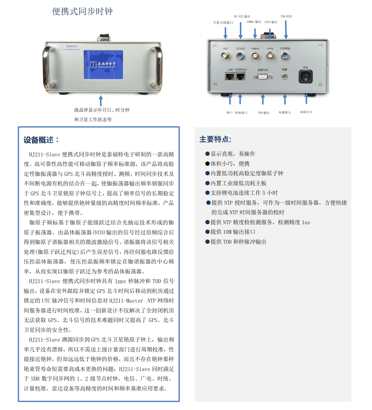 HJ211-Slave便攜式同步時(shí)鐘是泰福特電子研制的一款高精度、高可靠性高性能可移動(dòng)銣原子頻率標(biāo)準(zhǔn)源,該產(chǎn)品將高穩(wěn)定性銣振蕩器與GPS北斗高精度授時(shí)、測(cè)頻、時(shí)間同步技術(shù)及不間斷電源有機(jī)的結(jié)合在一起,使銣振蕩器輸出頻率馴服同步于GPS北斗衛(wèi)星銫原子鐘信號(hào)上,提高了頻率信號(hào)的長(zhǎng)期穩(wěn)定性和準(zhǔn)確度,能夠提供銫鐘量級(jí)的高精度時(shí)間頻率標(biāo)準(zhǔn),產(chǎn)品密集型設(shè)計(jì),便于攜帶。...